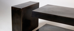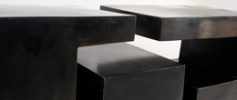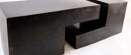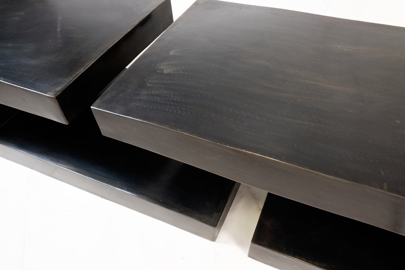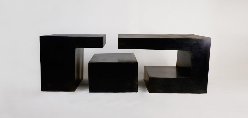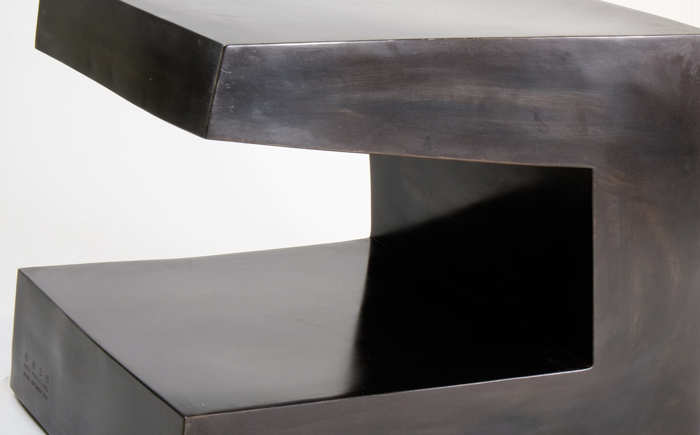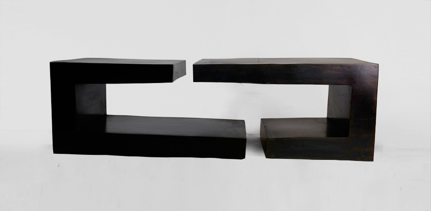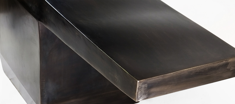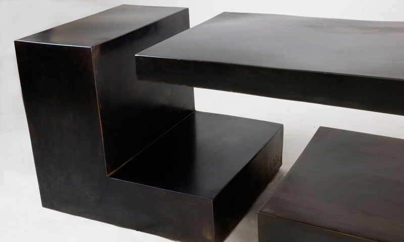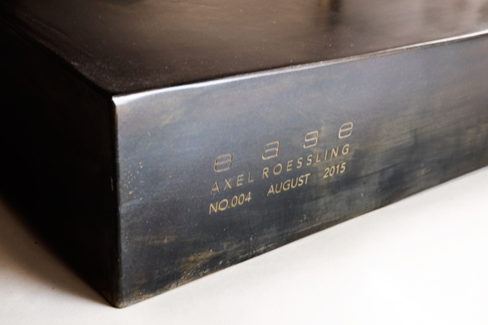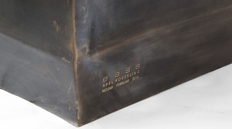 Ganz bewusst möchte ich, dass diese in einem langwierigen handwerklichen Prozess mit archaischen Hilfsmitteln hergestellten Objekte erscheinen wie nicht eindeutig von Menschenhand entworfen und entwickelt, vielmehr wäre es mir recht, wenn diese dem Betrachter oder Nutzer erschienen wie naturalistische Formationen / Fundstücke, die "einfach da", nicht an Raum und Zeit gebunden sind und dennoch in ihrer archaischen Gestalt verweisen zu scheinen auf Gegenwärtiges. Die Herstellung dieser Objekte ist einem - sicherlich auch spielerischen und augenzwinkerndem, gleichzeitig aber ernstgemeinten und unumstößlichen - Dogma unterworfen des Inhalts, dass keine der üblichen und zeitgemäßen modernen Techniken zu deren Herstellung herangezogen werden darf, wie auch die Verwendung von Messmitteln (Bandmaß, Messschieber..) und Prüfmitteln (rechter Winkel, Stahllineal) ausgeschlossen ist. Diese Objekte entstehen aus purer Körperkraft und den vier Werkzeugen Stichsäge, Akkuschrauber, Schweißgerät und Winkelschleifer. Jedes dieser Objekte ist ein absolutes Unikat, die Abmaße auch mir als Erschaffer unbekannt. Alle Arbeiten sind versehen mit einem eingravierten Vermerk des Projekts sowie des Herstellungsmonats-/Jahres und der fortlaufenden Herstellungsnummer.